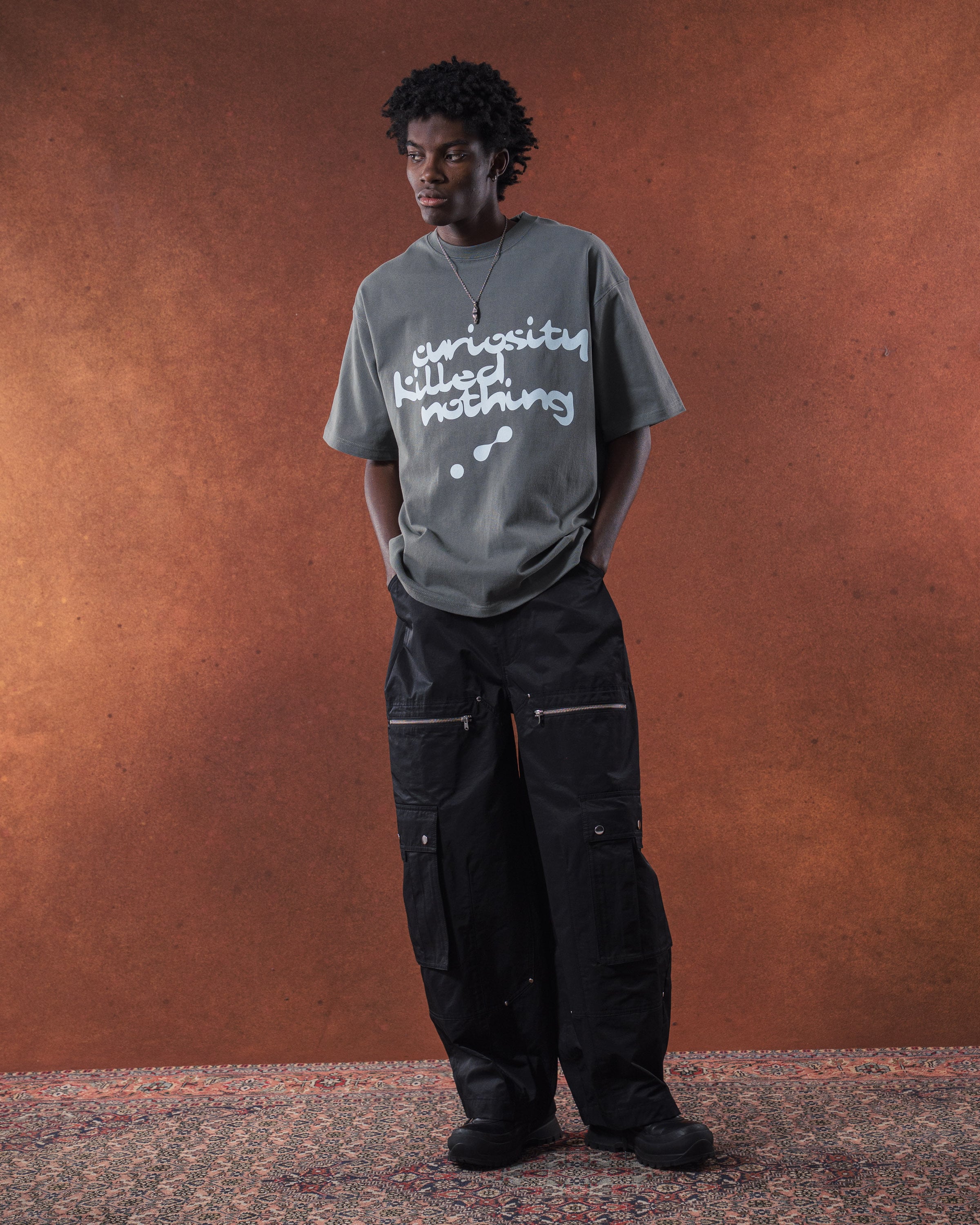 ナイロン素材を採用したマルチポケットカーゴパンツ。ジップポケットやサイドの立体ポケットなど様々な用途に応じた収納力を完備しています。ウエストにはドローコードを配し、ベルトレスでもご着用が可能です。膝した部分で膨らみを持たせ、裾に向かってカーブさせたバルーンシルエットに設計しています。