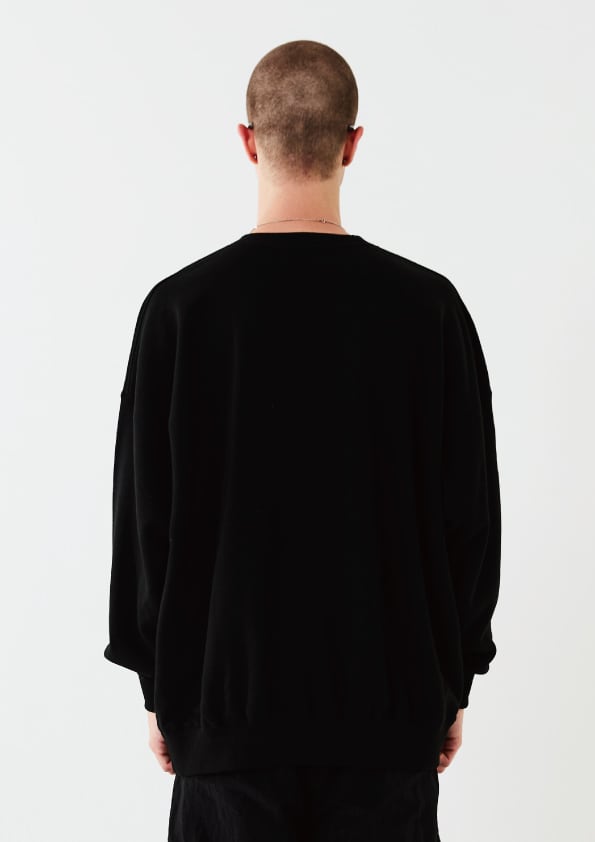 裏糸に太番手の綿糸を使用した度詰めの裏毛素材。しっかりとした厚みがありながらも、滑らかな風合いを表現しています。度詰めに編み立てることで、型崩れを起こしずらく、長くご着用いただけます。天然糸に拘ることで、肌触りが良いのも嬉しいポイント。
