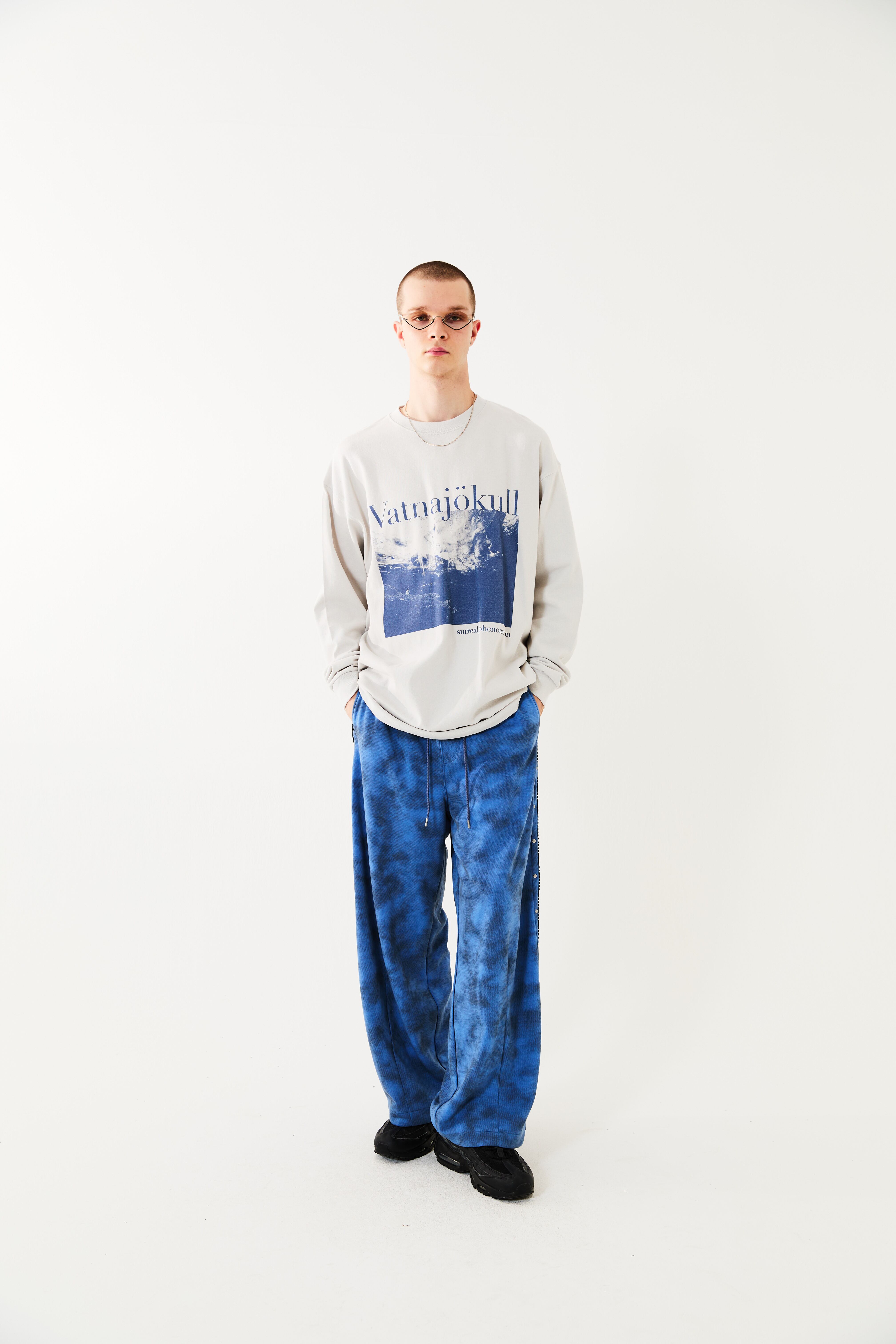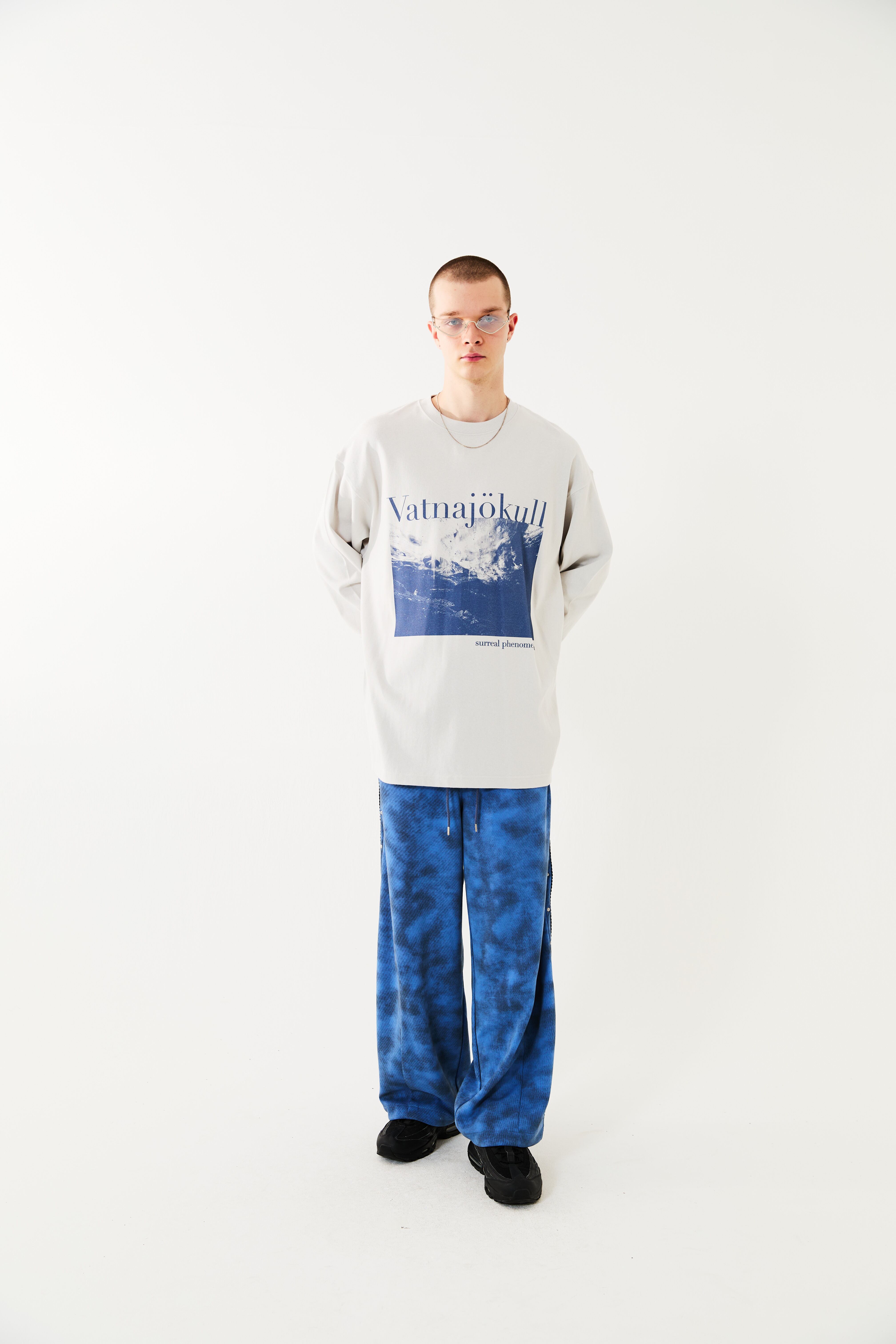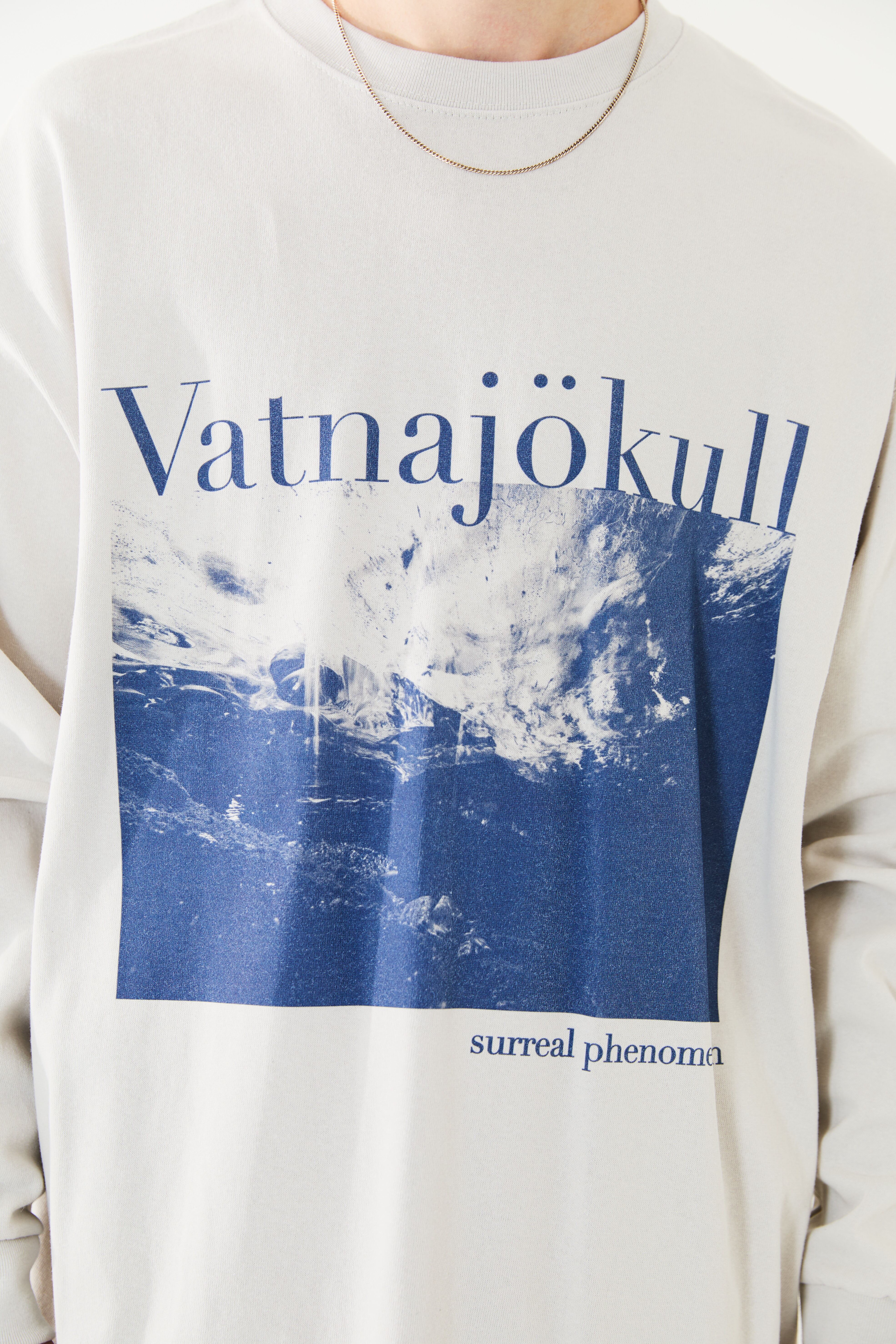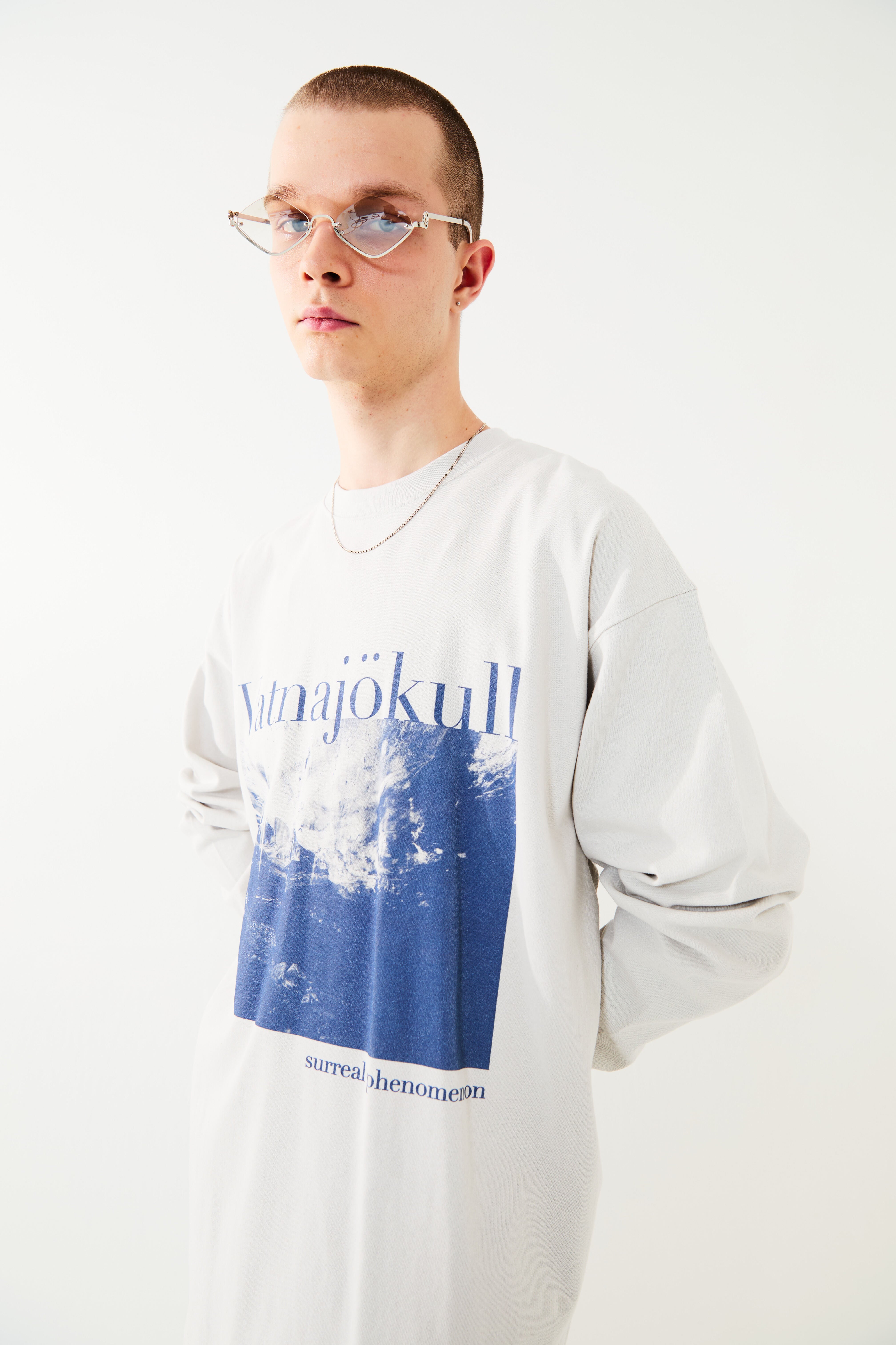 アイスランドの氷の洞窟をコラージュさせて作成したグラフィック長袖T-SH。モダンなフォントとアイスケーブを色の陰影で表現しています。ボディーはオーバーサイズシルエットに設計。リラックスムードでご着用いただけます。
