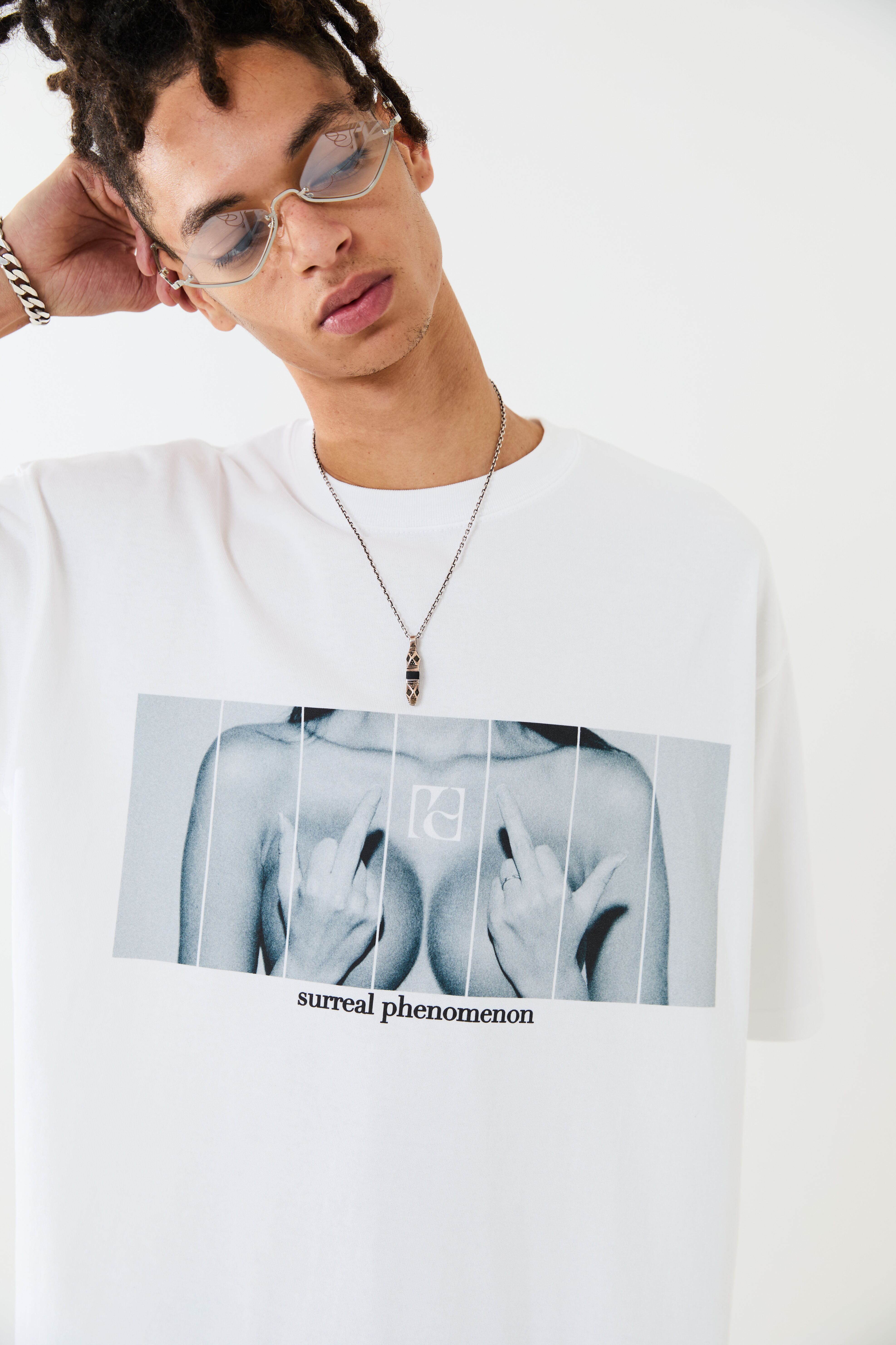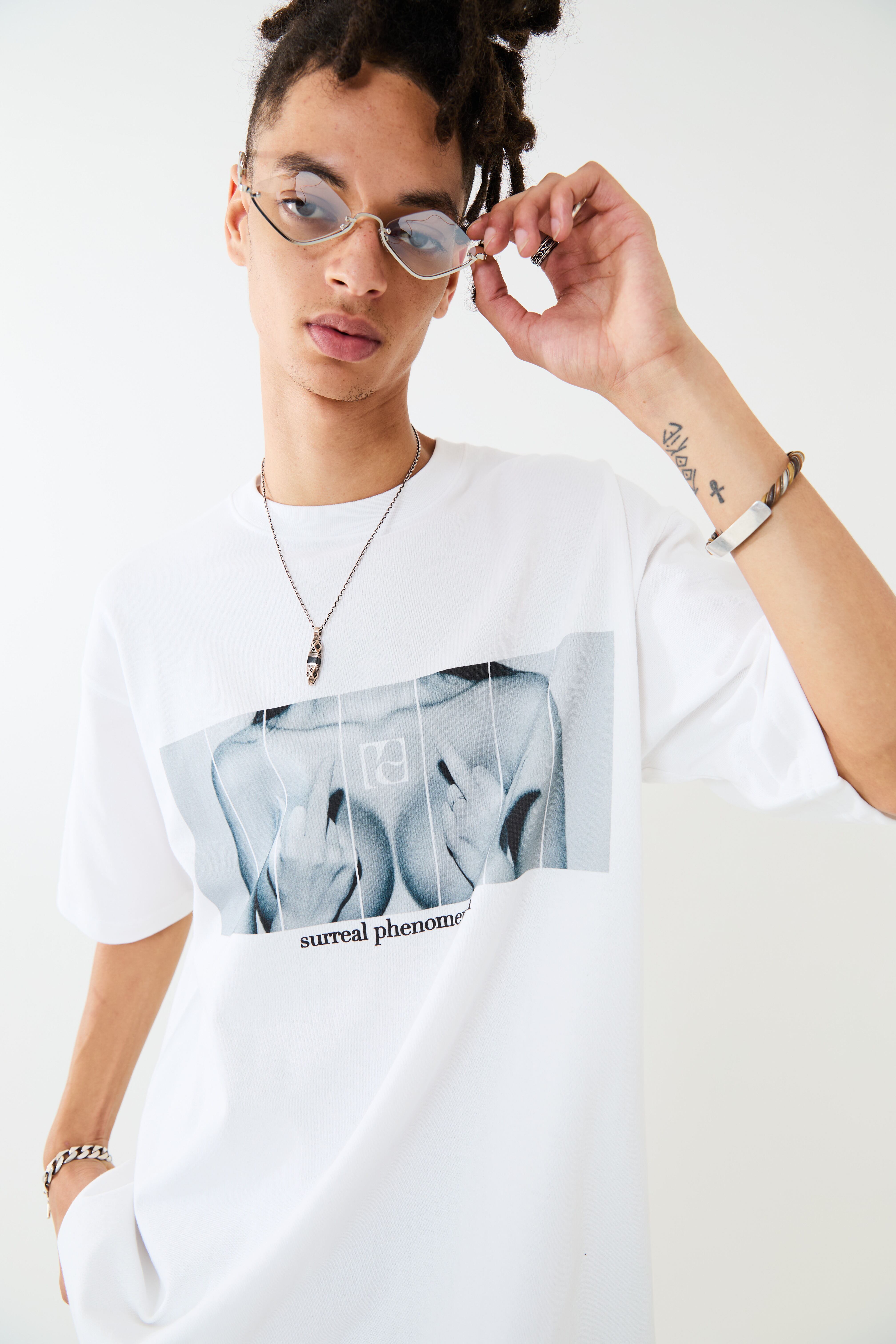 女性をモチーフとしたフォトコラージュT-SH。大胆さと型破りな個性をイメージし、インクジェットによるプリント加工を施しています。ボディーはオーバーサイズシルエットに設計。リラックスムードでご着用いただけます。